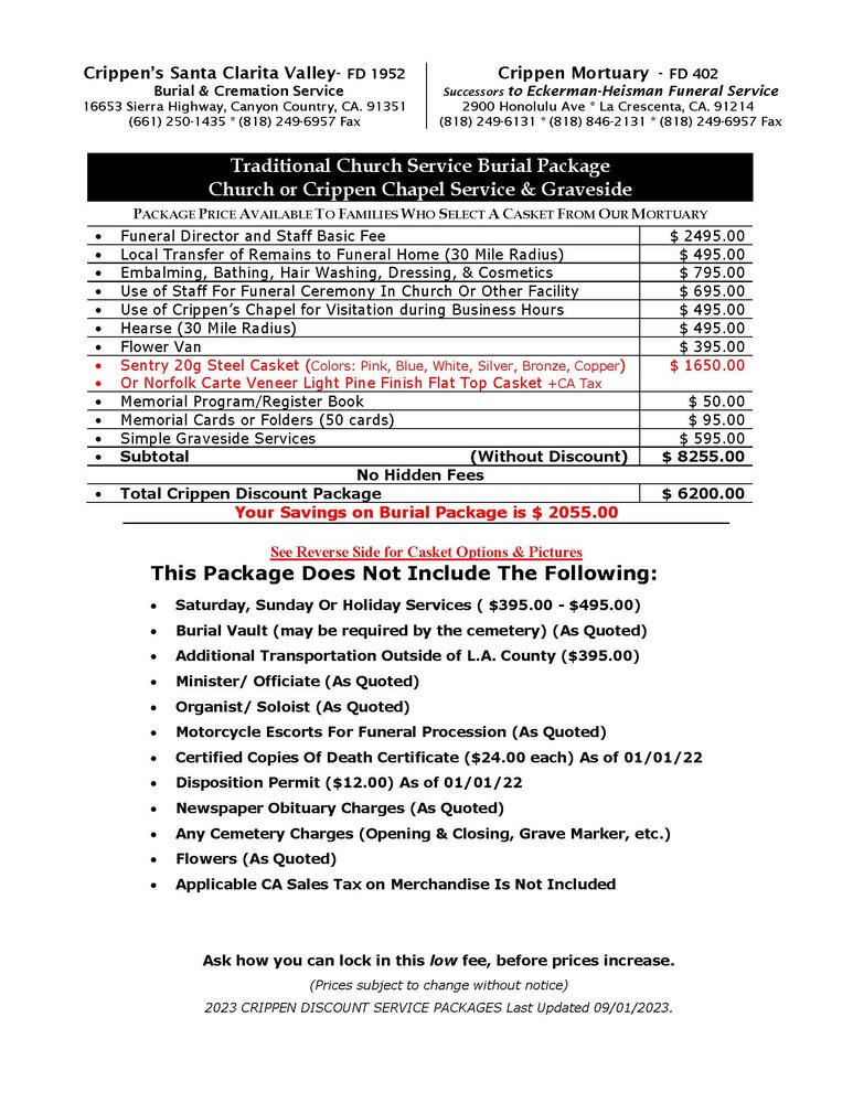 • Offering Personalized Visitations, Funerals & Memorials At Crippen Mortuary Chapel's in Glendale or Canyon Country locations